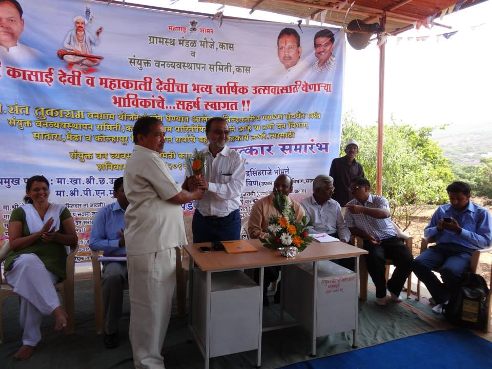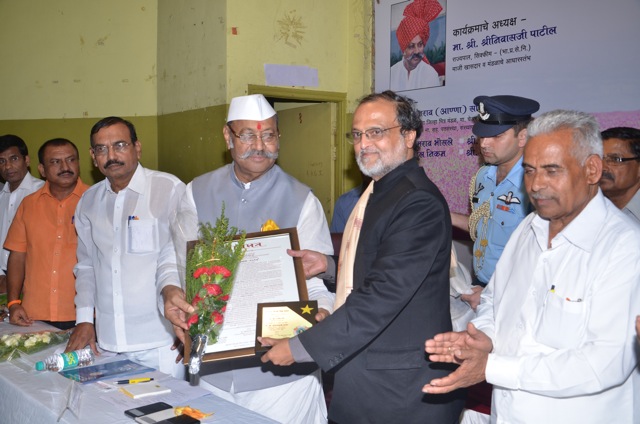 Hon. Shriniwas Patil, former IAS and present Governor of Sikkim (first state in India to become fully organic food supplier) honors Rajendra Shende, Chairman TERRE and former director UNEP with 'Ajinkyatara Award '..