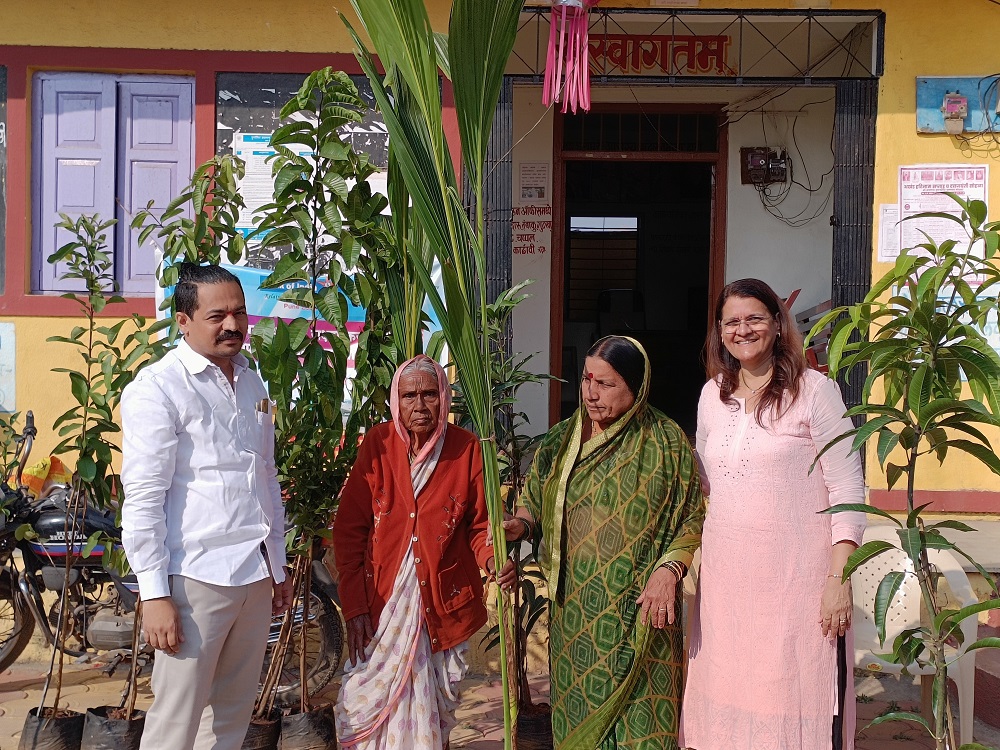 Community-based ecological restoration of degraded forests for sustainable livelihood development in the biodiversity hotspot of the Western Ghats in India. Under the above project title on 2nd December 2022, TERRE Policy Centre in collaboration with Global Nature Fund, Germany conducted a tree (fruit) plantation activity at Kodit (Kh) village of Purandar tehsil of Pune district. Local panchayat body members also contributed to the distribution work of plants.
